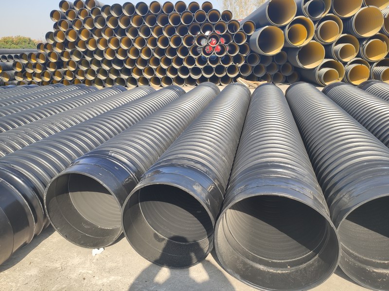 聚乙烯(HDPE)钢带增强螺旋波纹管是用连续钢带压成近似^形的螺旋钢肋缠绕在内外两层热熔接的聚乙烯间,把钢材的高钢度、高强度和聚乙烯的柔韧、耐腐、耐磨结合在一起。是我国近年开发出来的一-种新型塑料埋地排水管。